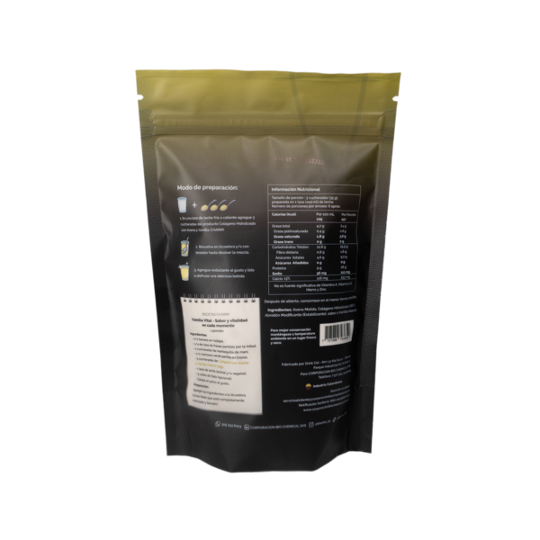 COMPOSICIÓN: Avena Molida, Colágeno Hidrolizado y sabor a Vainilla.