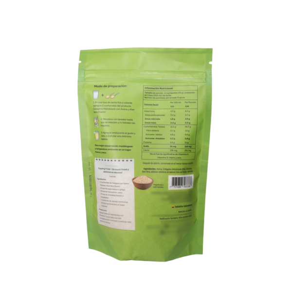COMPOSICIÓN: Avena en hojuela, Colágeno Hidrolizado y Aloe Vera